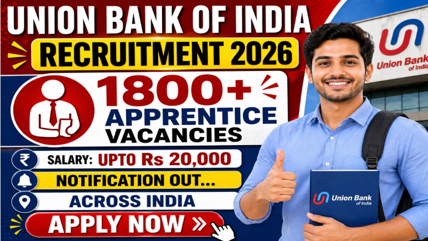 Union Bank of India Apprentice Recruitment 2026: Get the latest Union Bank of India recruitment notification 2026 for 1865 Apprentice vacancies under the Human Resource Vertical, Manpower Planning and Recruitment Division, Central Office, Mumbai. The online application process starts on 29th April 2026 and the last date to apply online is 19th May 2026. Find Union Bank of India vacancies across India on the official website www.unionbankofindia.co.in. You can also get Free Job Alert of “Upcoming Union Bank of India Apprentice Recruitment 2026” notifications for freshers and experienced candidates. Also know the direct official link for Union Bank of India Apprentice Recruitment 2026 apply online from the Union Bank of India career page.